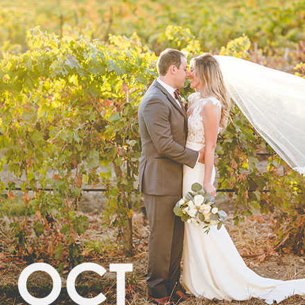 Beautiful filtered sunlight and dramatic skies are hallmarks of Spring in the vineyard. Early buds start growing on the vines while bright green grass and yellow mustard flowers create a colorful carpet. The Sun Garden comes alive with new green growth and flowers. And, the wisteria blooms creating a purple-studded overhang for ceremony vows. The sun sets early, creating spectacular sunsets for guests to enjoy, and receptions with romantic candlelight.
